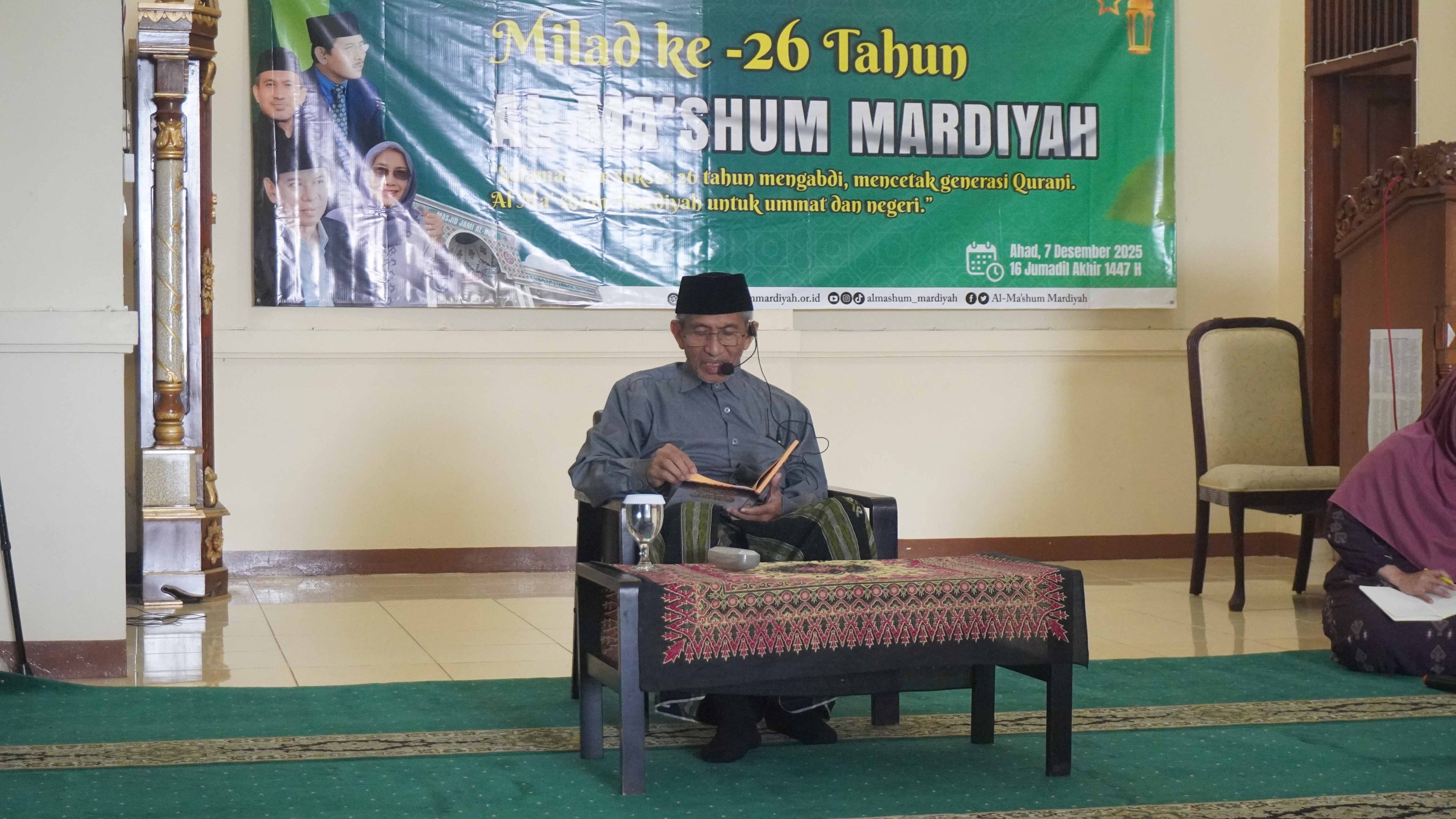 Pada hari Ahad, 7 Desember 2025, Pesantren Al-Ma’shum Mardiyah menyelenggarakan peringatan Milad ke-26 dengan tema “Selamat dan sukses 26 tahun Al-Ma'shum Mardiyah—mengabdi dan mencetak generasi Qur'ani untuk umat dan negeri.” Acara yang berlangsung dengan penuh kekhidmatan dan kebersamaan ini dihadiri oleh para santri, dewan guru, pimpinan pesantren, para alumni, serta para orang tua santri. Peringatan milad menjadi momentum penting bagi Al-Ma’shum Mardiyah untuk kembali meneguhkan komitmen dalam membina generasi Qur’ani yang berilmu, berakhlak, dan bermanfaat bagi masyarakat luas. Rangkaian kegiatan berlangsung dengan tertib, dimulai dari pra-acara hingga penutup, yang seluruhnya mencerminkan nilai-nilai kebersamaan dan keberkahan.