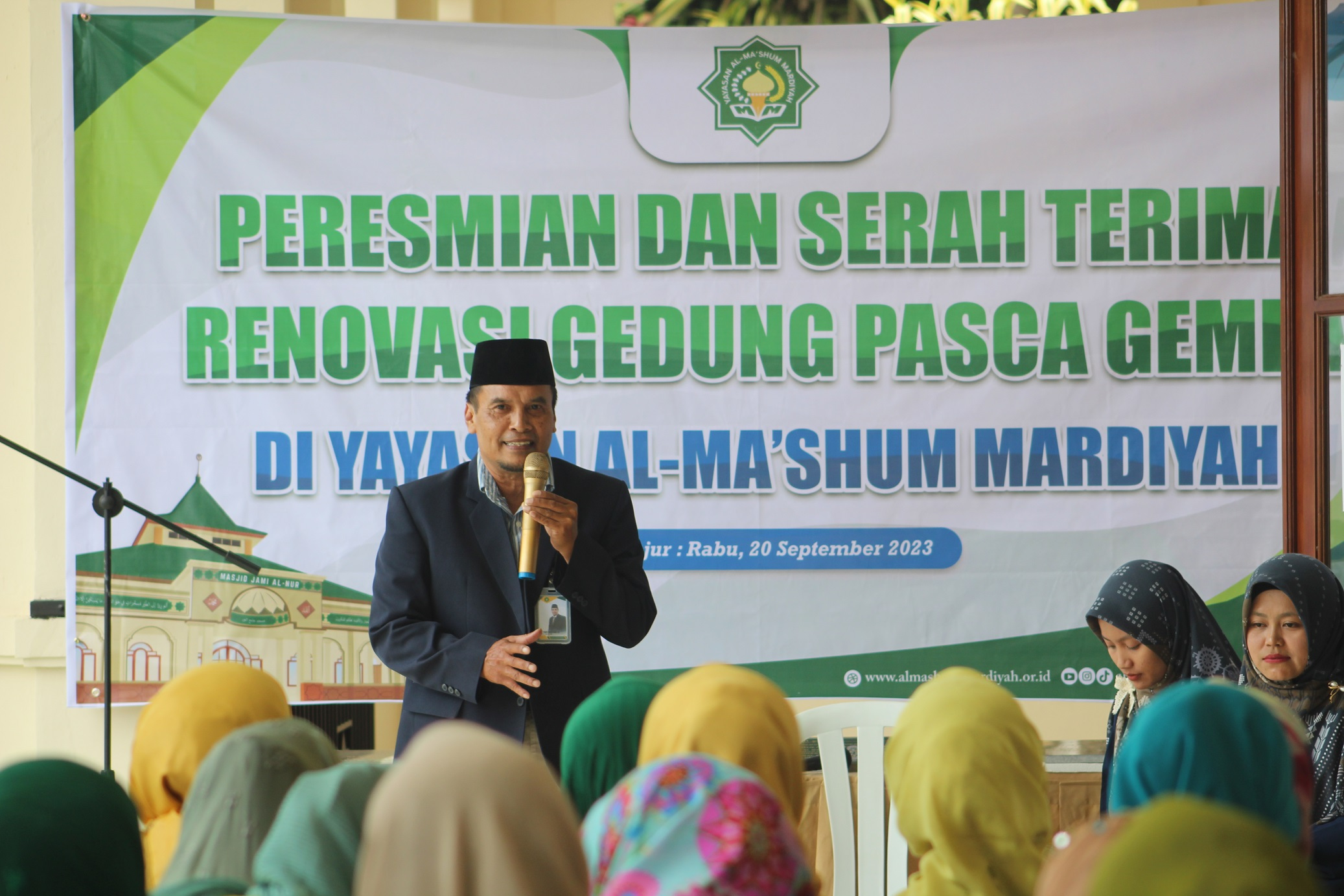 almashummardiyah.or.id - 20/09/23 | Rabu (20/09/23) Yayasan Al-Ma'shum Mardiyah melakukan peresmian dan serah terima gedung yang telah selesai direnovasi pasca gempa bumi Cianjur 2022 silam.