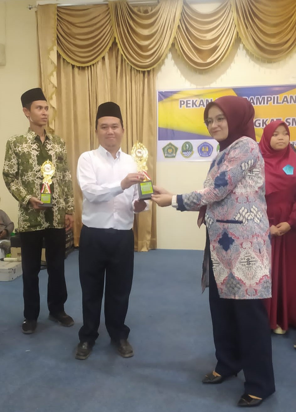 Deny Sopyan Putra, S.E. & R.Maulana Hasanudin, S.Pd. saat menerima tropi | Foto oleh Kontributor SMAT Al-Ma'shum Mardiyah